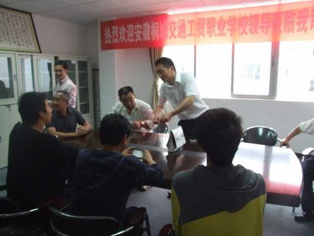 我司彭經(jīng)理,張老師和安徽桐城交通工貿(mào)職業(yè)學(xué)校老師交流