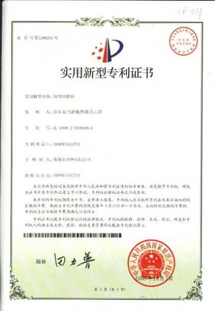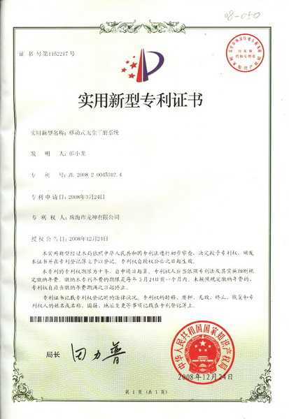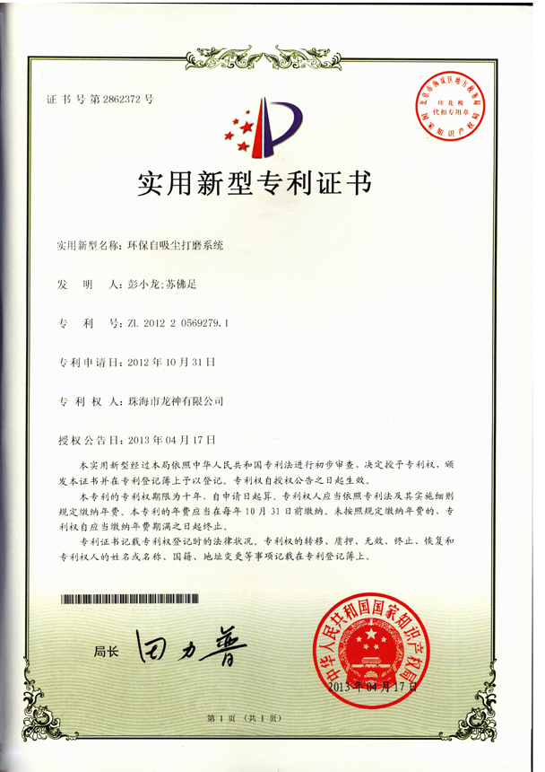 ![]() 移動(dòng)式無塵干磨專利證書 |