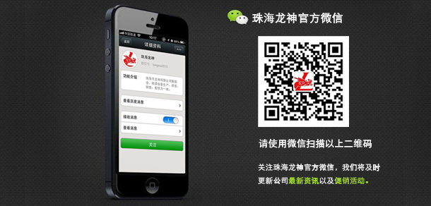 珠海龍神官方微信敬請(qǐng)關(guān)注! 2013-09-18 16807 珠海市龍神有限公司公共微信號(hào)已申請(qǐng)成功,請(qǐng)大家多多關(guān)注!掃描二維碼,也可直接搜索公眾微信號(hào)“珠海龍神”,我們將不定期發(fā)布公司最新資訊。您也可以發(fā)消息和我們進(jìn)行互動(dòng)。查看歷史消息收看您錯(cuò)過的動(dòng)態(tài)新聞,讓您第一手掌握最新動(dòng)態(tài)。