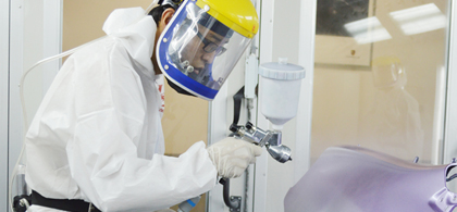 (8)噴涂面漆。將調(diào)好的面漆加入噴槍罐中,調(diào)整噴槍的氣壓、出漆量以及噴幅后,開始均勻地噴涂在鈑金件上。不同的面漆在噴涂時(shí)的工序也有所不同。