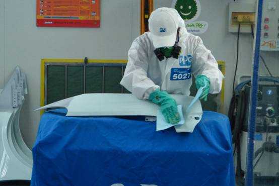 國賽展位龍神現(xiàn)場演示保險杠修復