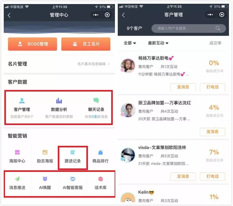 智能喚醒,自動跟進客戶互動,與意向客戶保持密切互動;