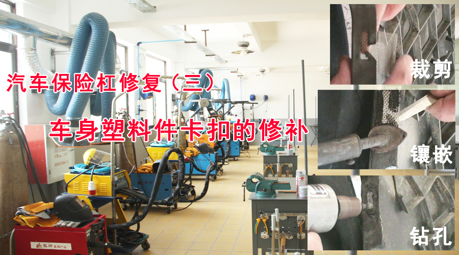 汽車保險(xiǎn)杠修復(fù)(一) 汽車保險(xiǎn)杠的裂縫修復(fù) 2014-11-20 38814 對(duì)于汽車保險(xiǎn)杠常見的邊緣開裂和破洞,可以使用無(wú)銹加固網(wǎng)焊接修復(fù)技術(shù)對(duì)其進(jìn)行快速高效的修復(fù),利用此方法修復(fù)后的保險(xiǎn)杠可以恢復(fù)原廠保險(xiǎn)杠約85%的性能,不會(huì)大幅降低保險(xiǎn)杠減震吸能的能力。塑料件的裂縫修復(fù)詳細(xì)步驟見下圖。(以下步驟中用到的工具:龍神電動(dòng)氣動(dòng)鉆、龍神打磨機(jī)、龍神修補(bǔ)網(wǎng)、修補(bǔ)膠條、電烙鐵)