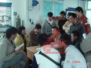 (左二)龍神彭小浣經(jīng)理與龍神班學(xué)生交流在企業(yè)實(shí)習(xí)經(jīng)驗(yàn)