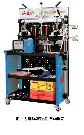 作為本屆大賽多角度鈑噴架、遮蔽紙架、打磨場地氣管、油漆色樣烘燒箱、壓縮空氣氣源、紅外線烤燈等指定產(chǎn)品提供企業(yè)的珠海市龍神有限公司,在產(chǎn)品體驗區(qū)內(nèi)展示了該公司的噴槍及噴涂機(jī)、空氣凈化、工作燈、除塵、環(huán)保、清潔及回收、鈑金修復(fù)以及研磨和拋光等系列產(chǎn)品。其中重點展示了該公司的標(biāo)準(zhǔn)鈑金快修套裝(圖1),該套裝產(chǎn)品采用了模具化制造工藝和國際先進(jìn)的鈑金維修技術(shù)。套裝內(nèi)具有多種專用工具可任意選擇,豪華專用工具車實用方便快捷,工具車背面還可懸掛多種鈑金修復(fù)工具。該套裝主要由四腳架式快速拉力器、兩腳架式快速拉力器、標(biāo)準(zhǔn)焊接附件、專業(yè)級液晶顯示鈑金修復(fù)機(jī)、以及免焊接專用工具等組成。