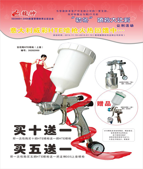 2、買(mǎi)五送一(即一次購(gòu)買(mǎi)五把HTE噴槍送一把龍神305噴槍)