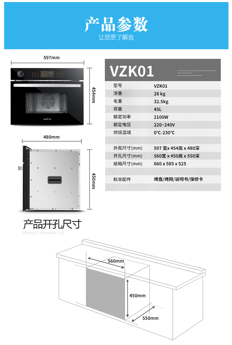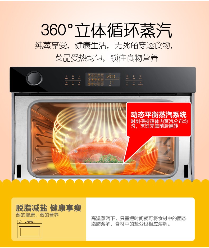 2、45L大容量,蒸與烤跨界組合,一機兩用,;