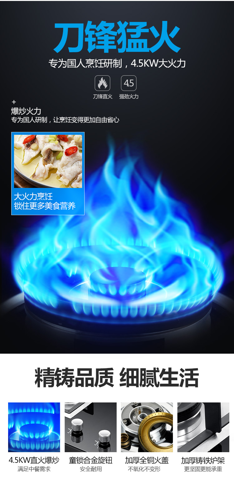 2、純銅火蓋,經(jīng)久耐用; 3、全鋁合金保潔爐頭,更利于清潔保養(yǎng),永不生銹; 4、方形水斜邊盤(pán)、方爐架,大氣上檔次; 5、旋鈕與燃燒器中心距加大至248mm,溫升更低" />