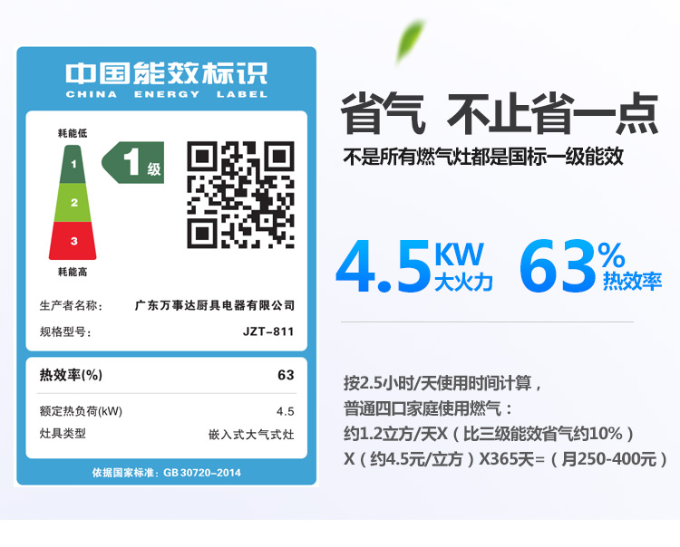 熱負(fù)荷:天然氣4.5kW 液化氣4.2kW