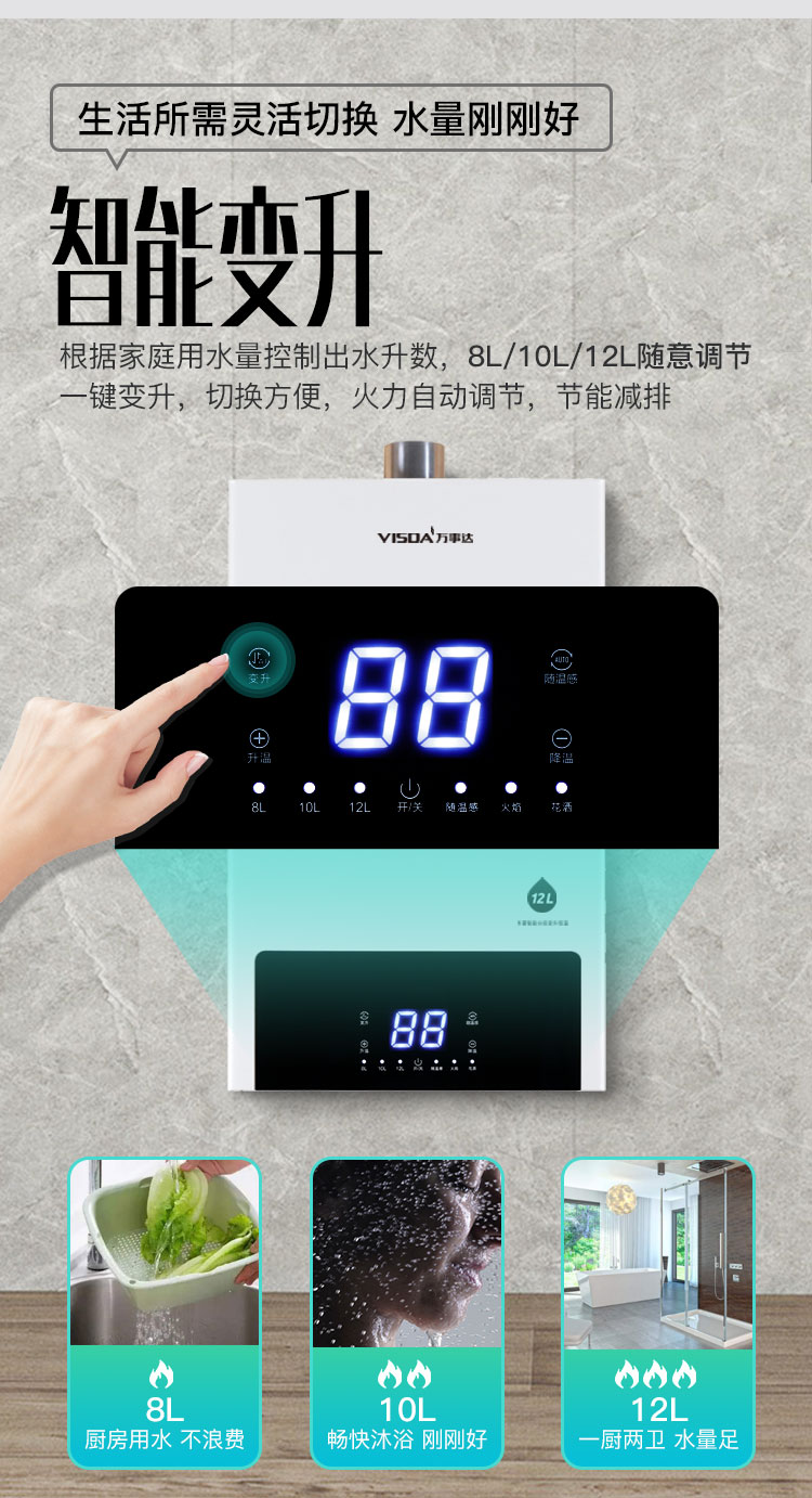 ◆8\10L\12L一鍵變升,切換隨心所欲,火力自動(dòng)調(diào)節(jié),節(jié)能省氣;