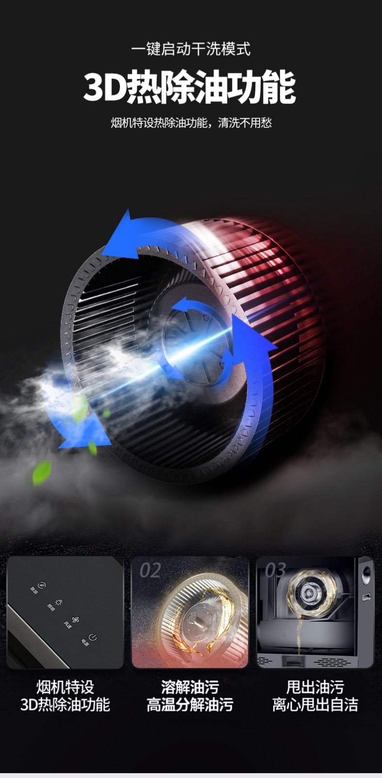 4、煙機(jī)特設(shè)3D熱除油功能,清洗不用愁;