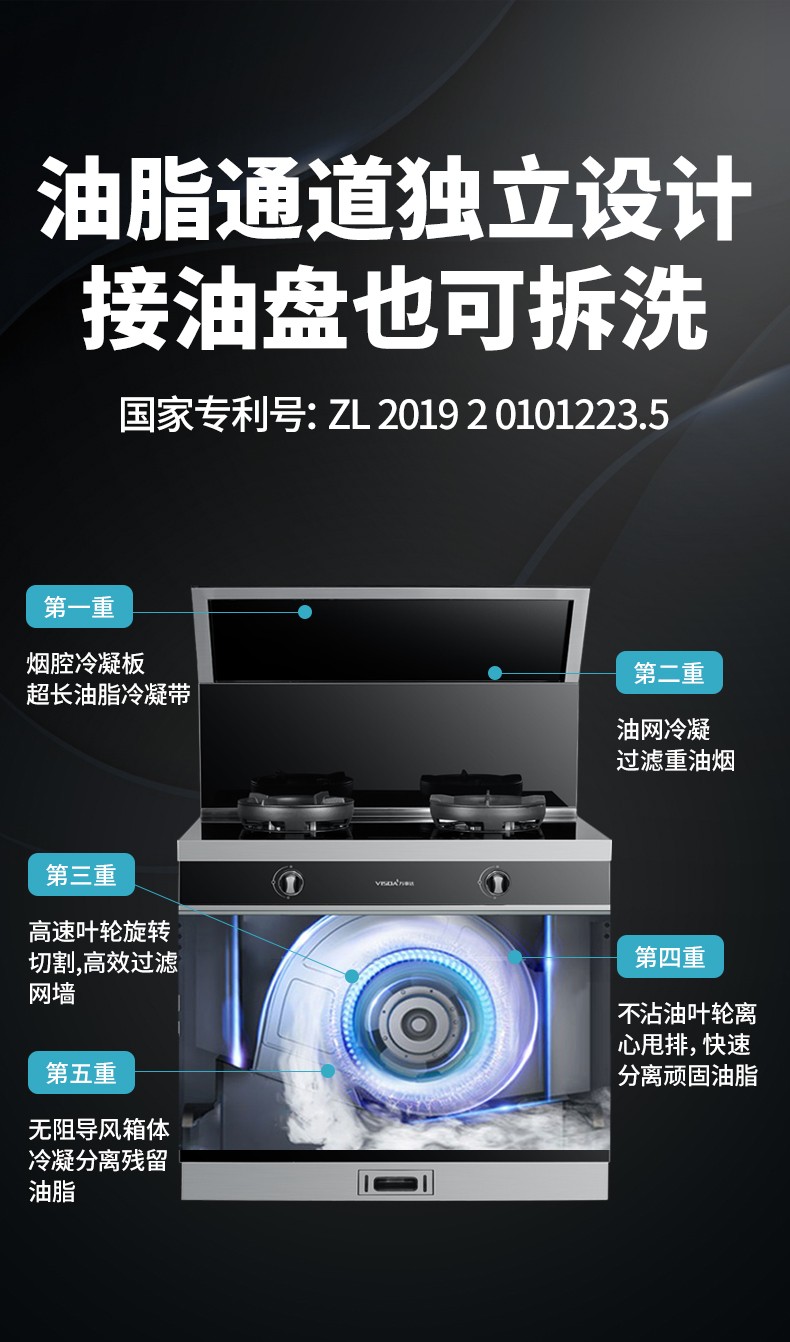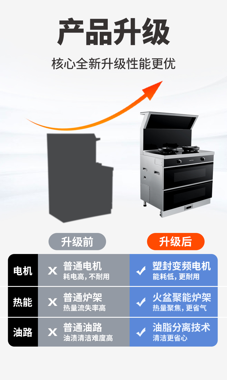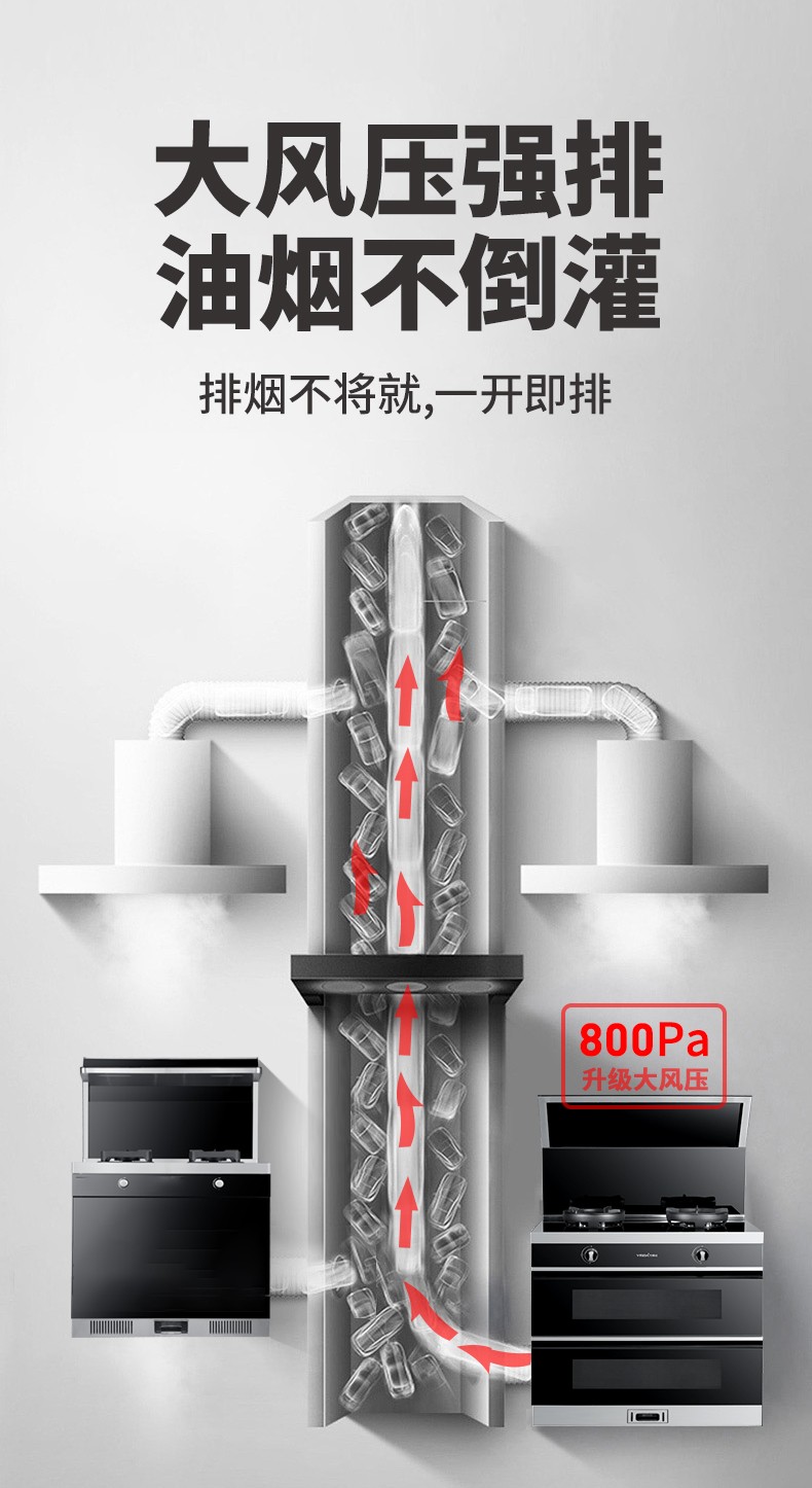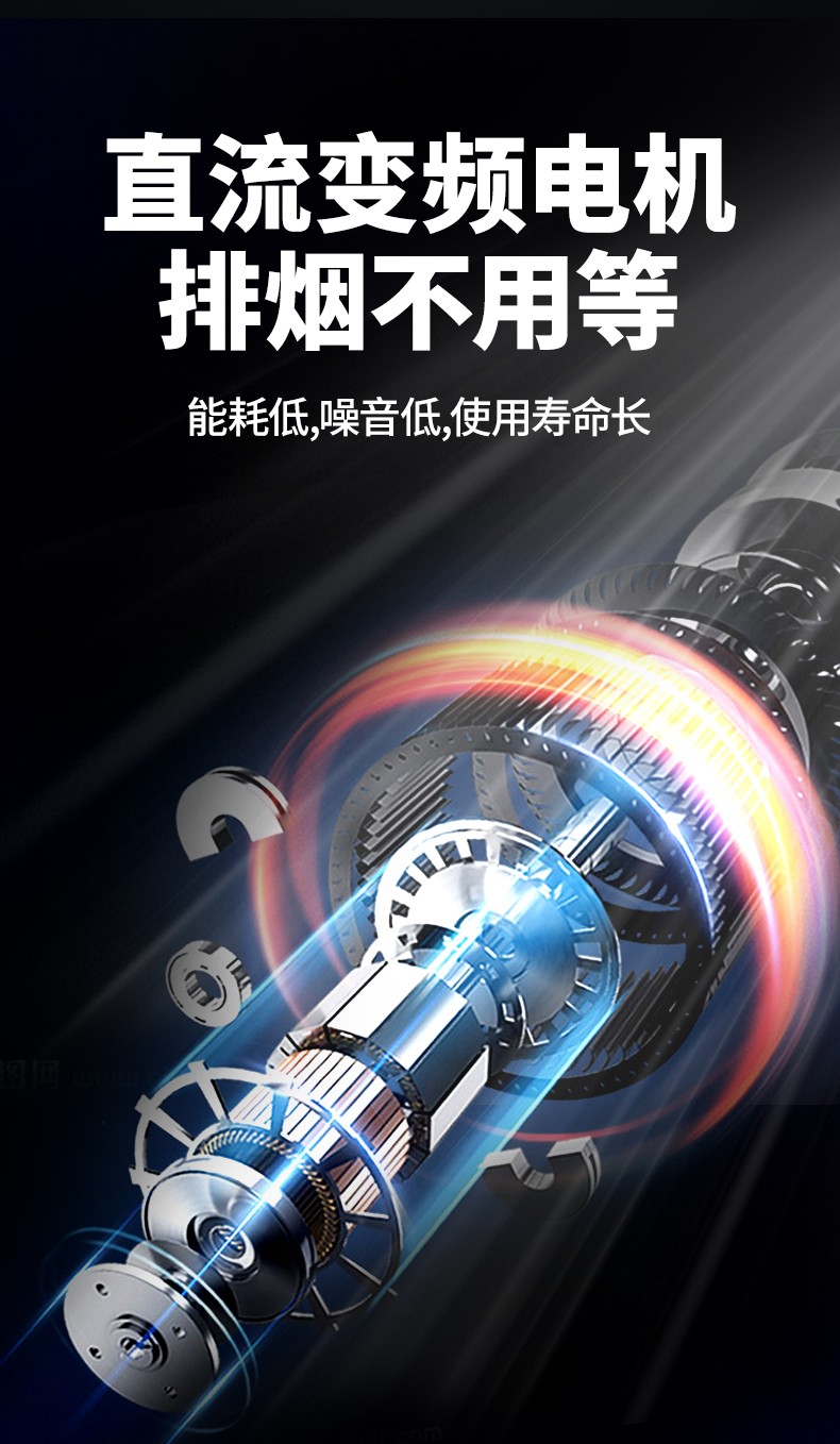 10、采用直流變頻電機(jī)排風(fēng)系統(tǒng),超強(qiáng)空氣性能,公共煙道擁擠不用愁;