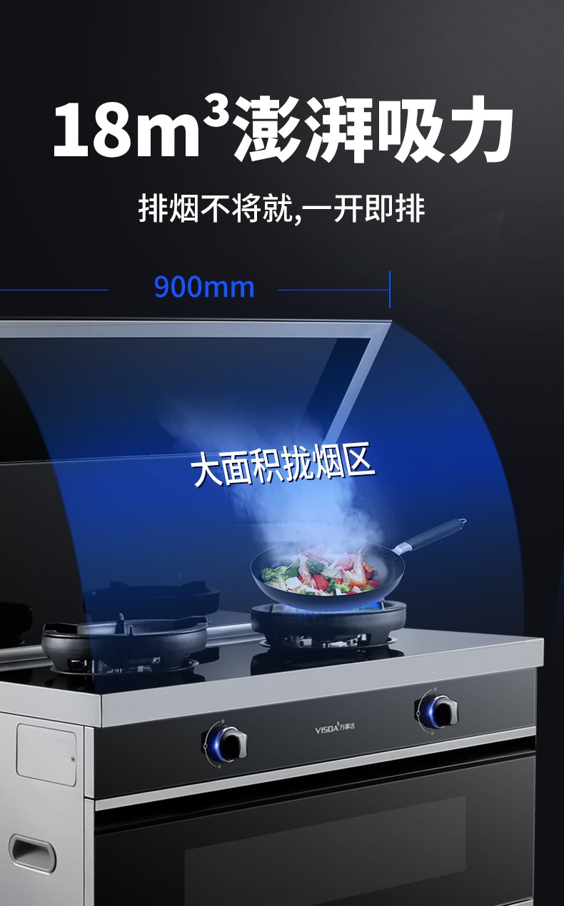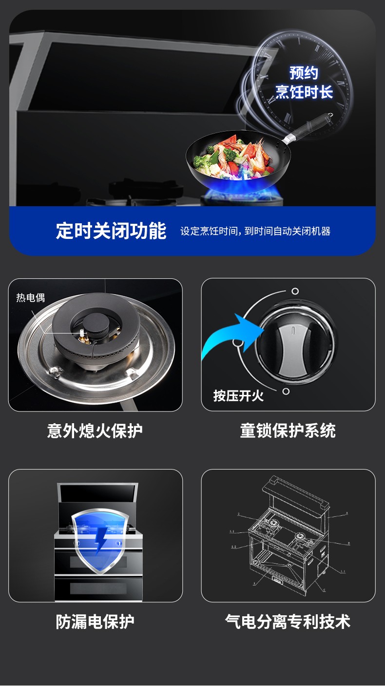 2、一鍵智能啟動(dòng),只啟動(dòng)灶具便能同時(shí)啟動(dòng)煙機(jī),智能無(wú)憂;