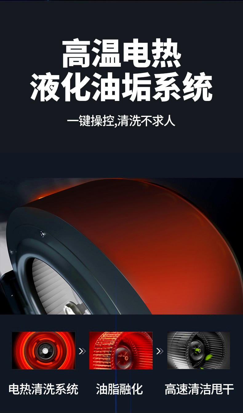 4、煙機(jī)特設(shè)3D熱除油功能,清洗不用愁;