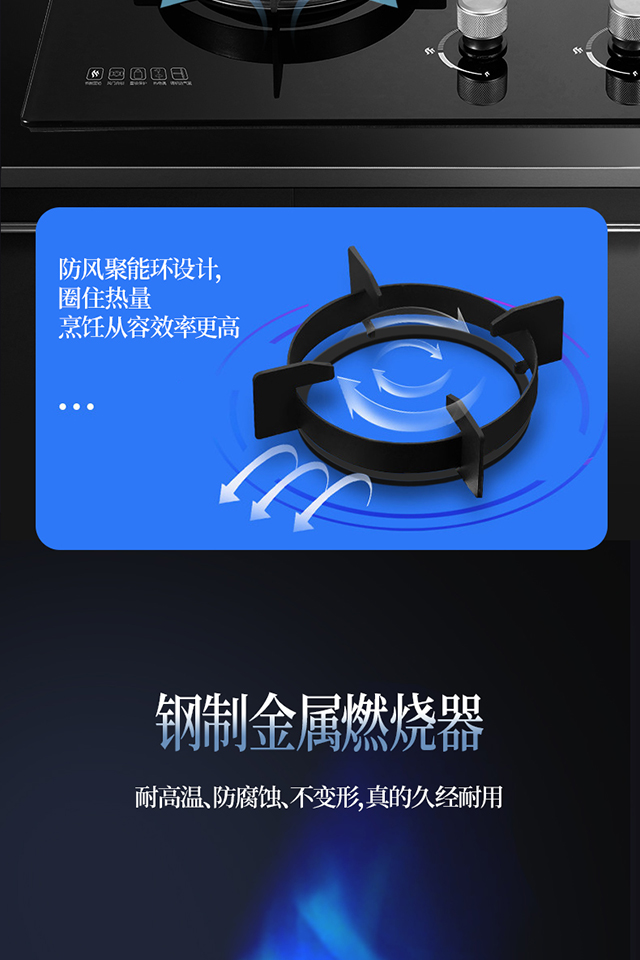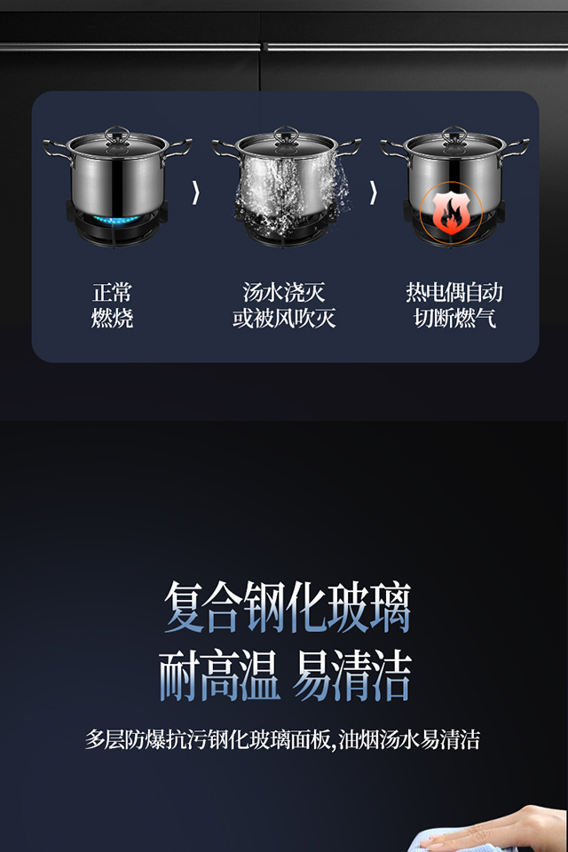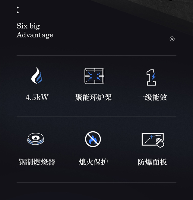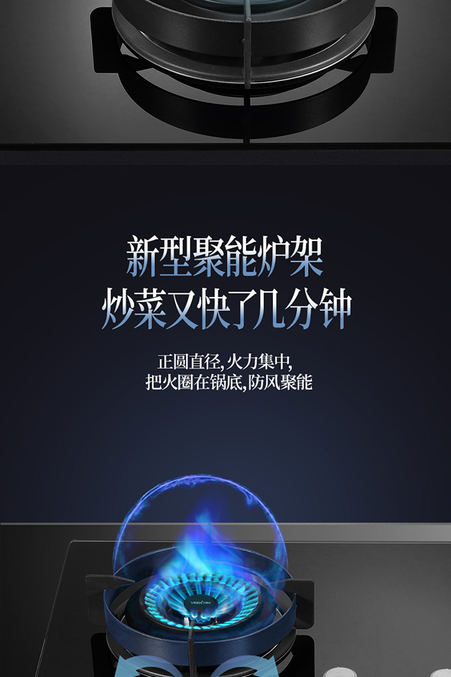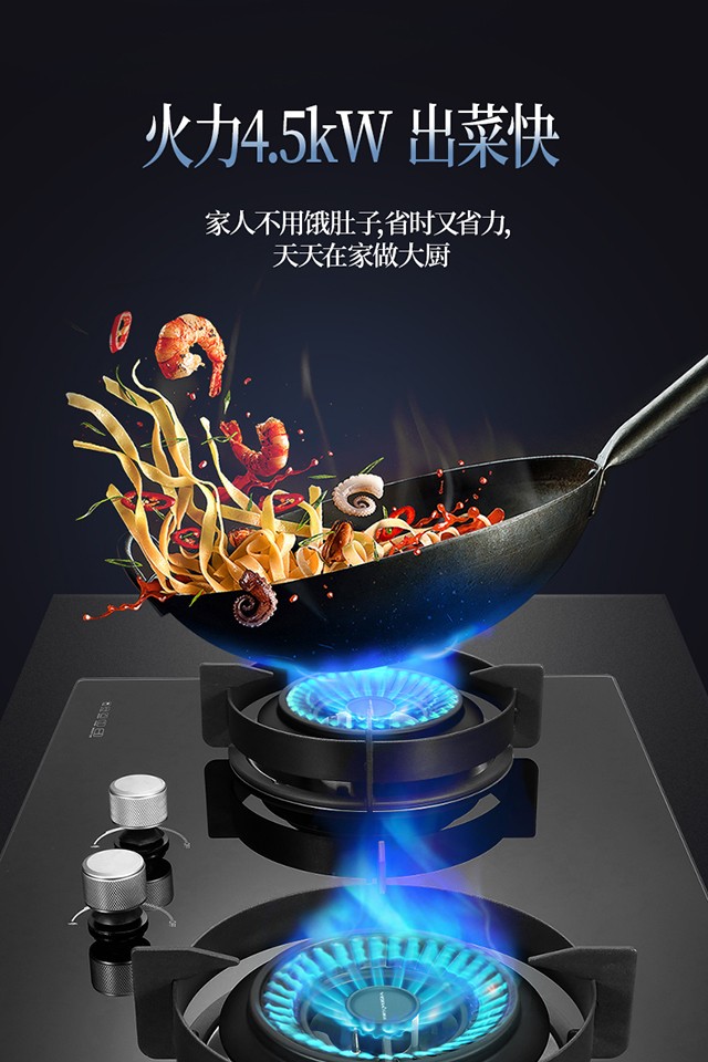 2、超大火力,滿足用戶爆炒需求; 3、聚能環(huán)爐架,聚能鎖熱; 4、鋼化玻璃面板+全保潔爐頭,安全易清潔;" />