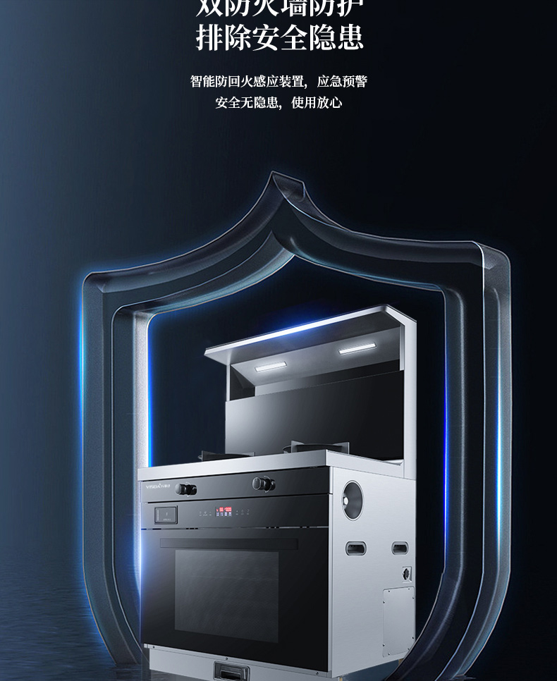 ◆雙防火墻防護(hù),防止油煙內(nèi)部起火,安全有保障;