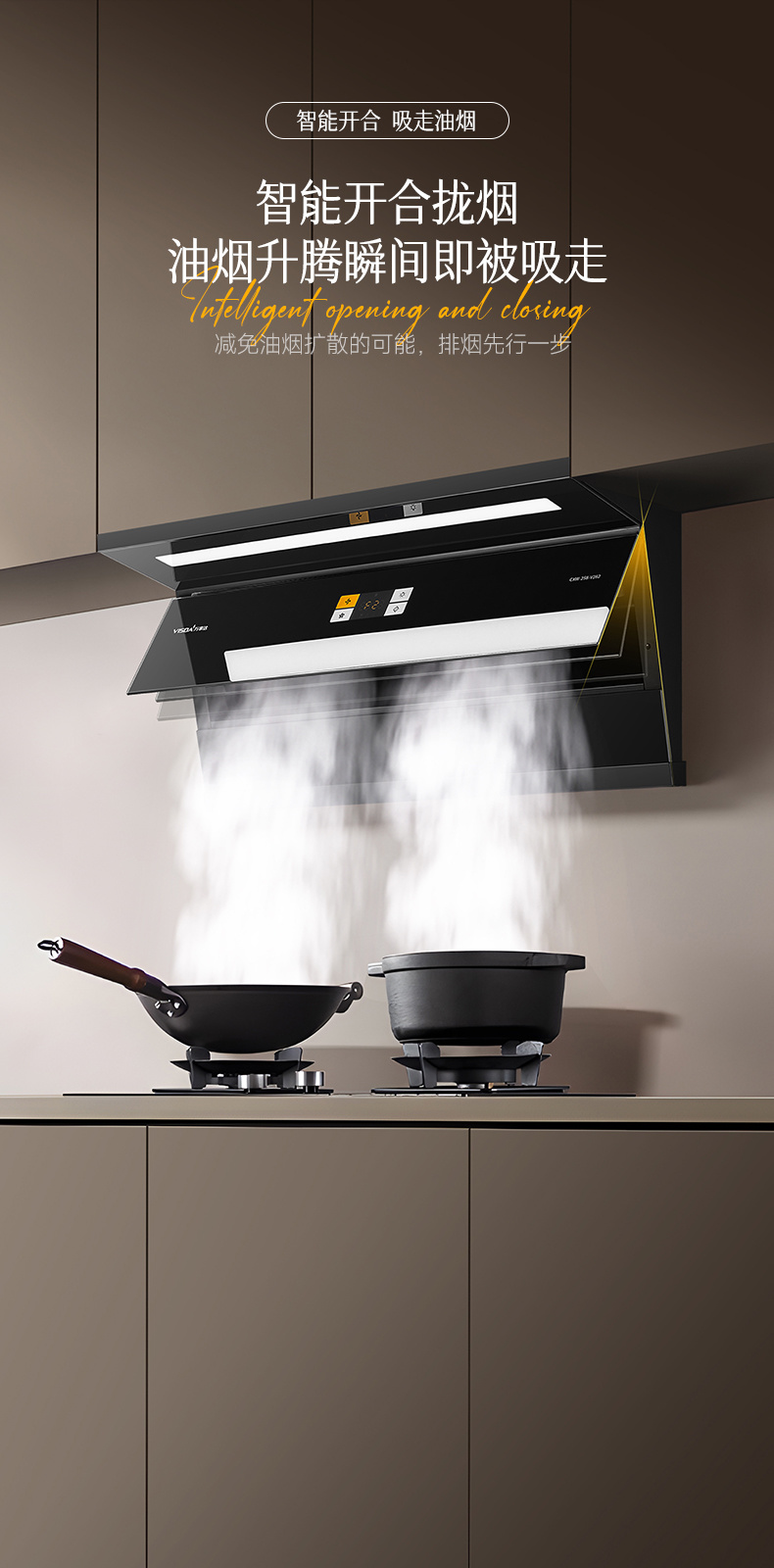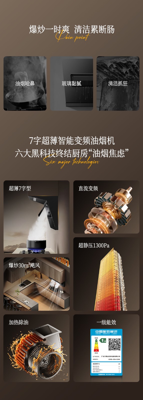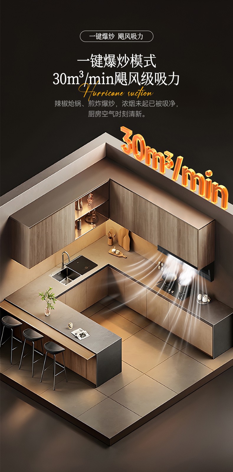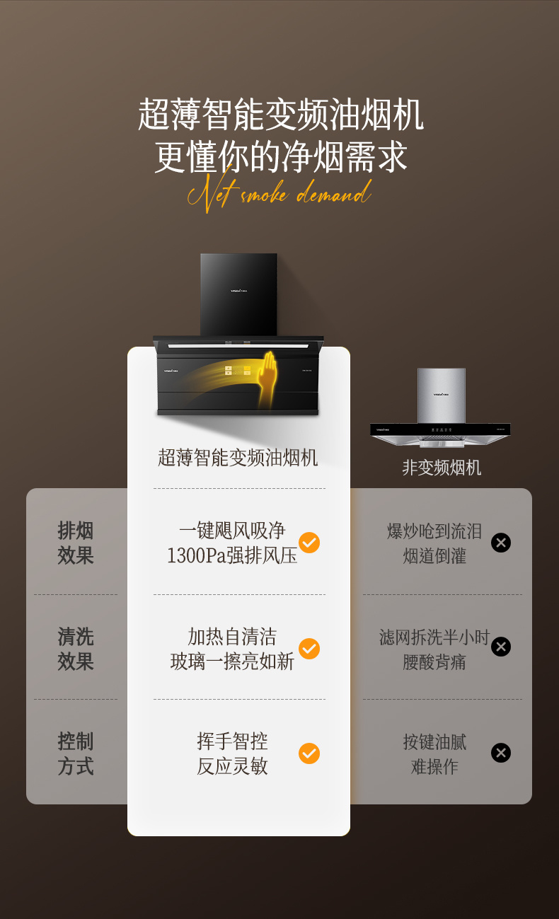 2、兩段式寬屏玻璃,易清潔,一擦即凈: 3、特設(shè)加熱除油功能,安全方便,清潔無憂: 4、鍵快速爆炒,迅吸排煙,風(fēng)量可達(dá)30m/min; 5、四位觸摸開關(guān)+體感雙控開關(guān),操作只在揮手之間,操作方便; 6、采用直流變頻電機(jī)排風(fēng)系統(tǒng),爆炒風(fēng)壓可達(dá) 1300Pa,超強(qiáng)空氣性能,公共煙道擁擠不用愁" />