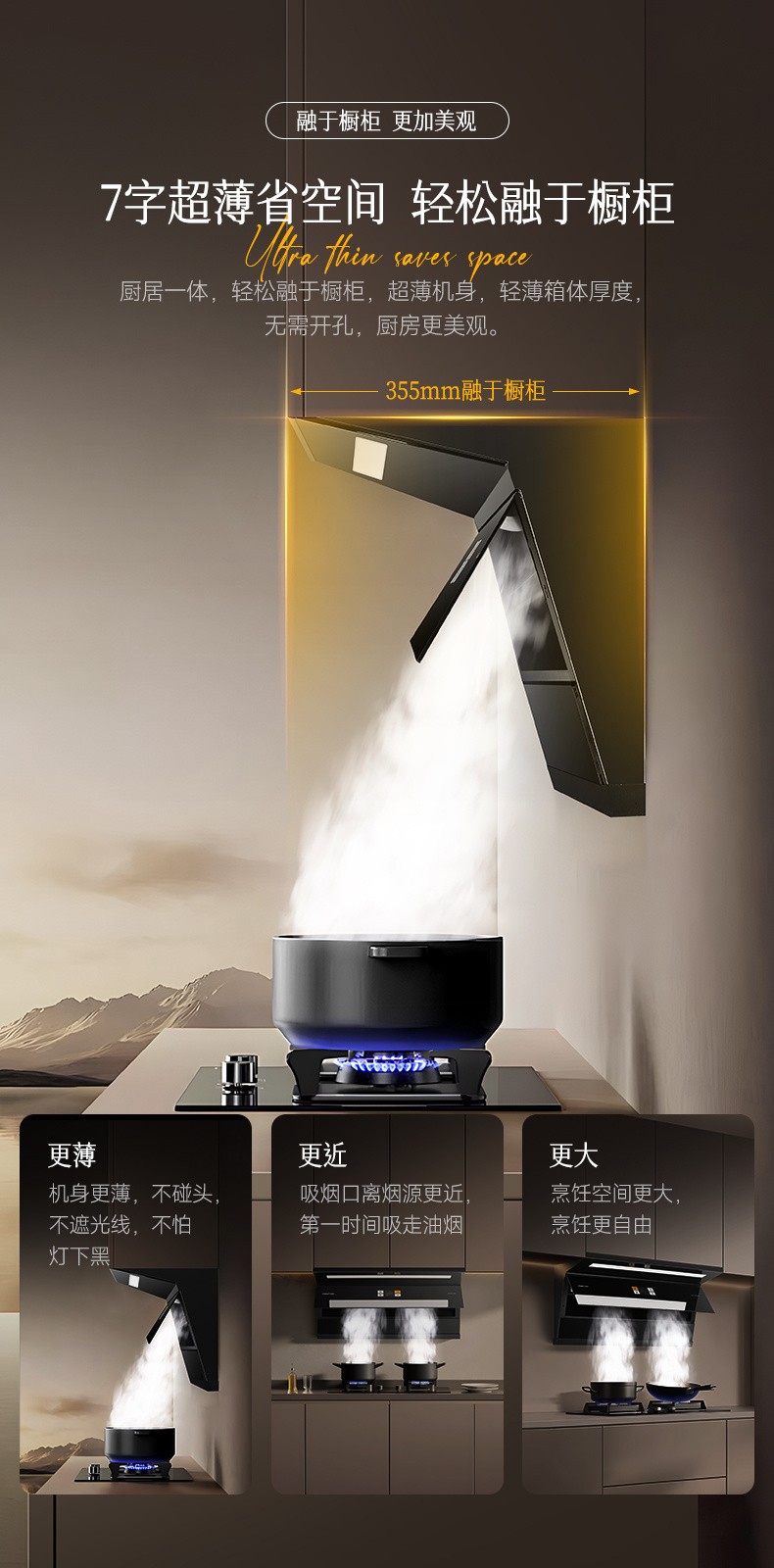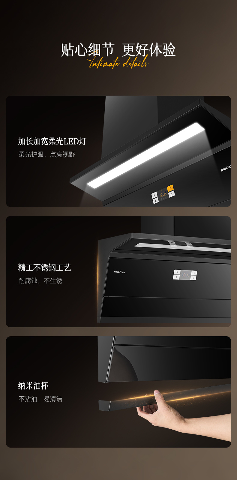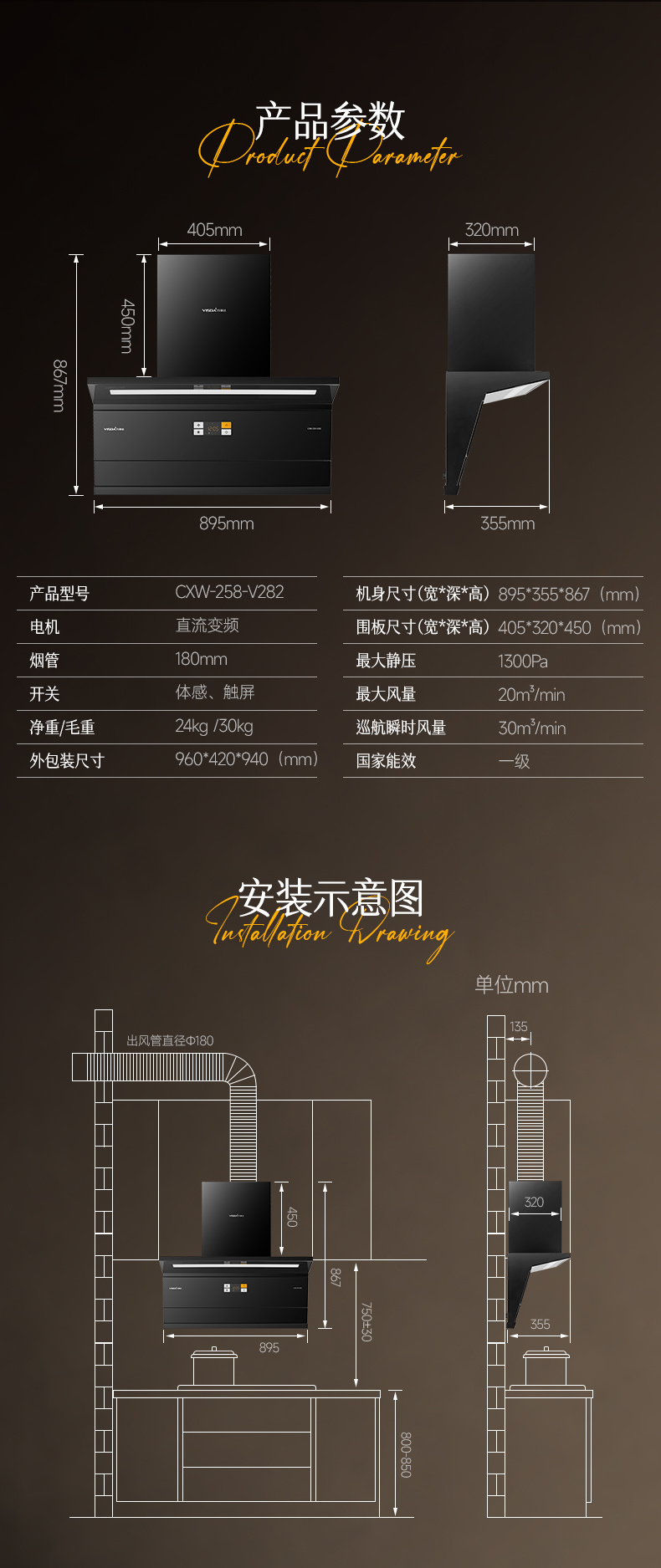 2、兩段式寬屏玻璃,易清潔,一擦即凈: 3、特設(shè)加熱除油功能,安全方便,清潔無憂: 4、鍵快速爆炒,迅吸排煙,風(fēng)量可達(dá)30m/min; 5、四位觸摸開關(guān)+體感雙控開關(guān),操作只在揮手之間,操作方便; 6、采用直流變頻電機(jī)排風(fēng)系統(tǒng),爆炒風(fēng)壓可達(dá) 1300Pa,超強(qiáng)空氣性能,公共煙道擁擠不用愁" />