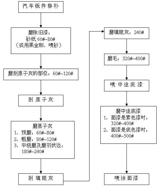 汽車(chē)修補(bǔ)干磨程序及砂紙的選擇 備注: 1、除舊漆時(shí)采用黑金剛配除漆除銹機(jī)能夠快速地除去平面、狹縫及凹凸不平表面的舊漆與銹漬;采用噴砂槍噴砂還可以很快地去除某些孔隙、縫隙或手都很難伸進(jìn)去的部位的舊漆與銹斑; 2、在磨填眼灰、中途底漆和尤其有邊角位、弧度位的表面時(shí)配打磨緩沖墊(置于圓盤(pán)砂紙和托盤(pán)之間)能夠使打磨作業(yè)更加順暢,并能獲得規(guī)則的表面質(zhì)量。 2007-08-25 12444