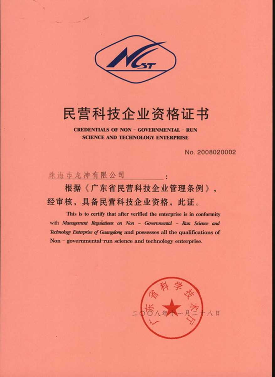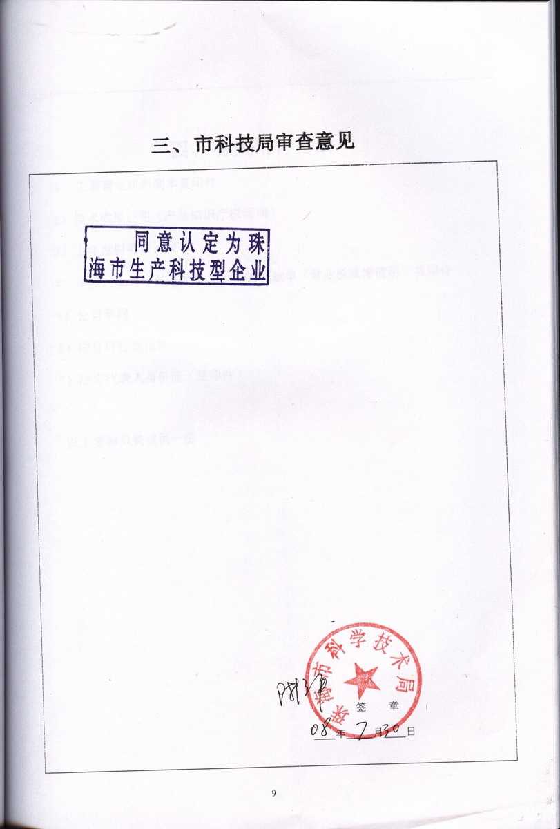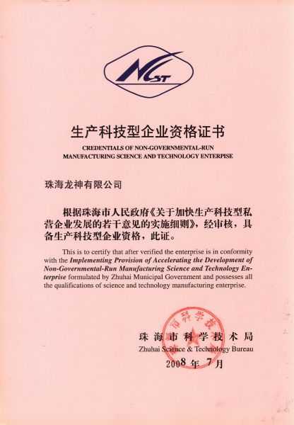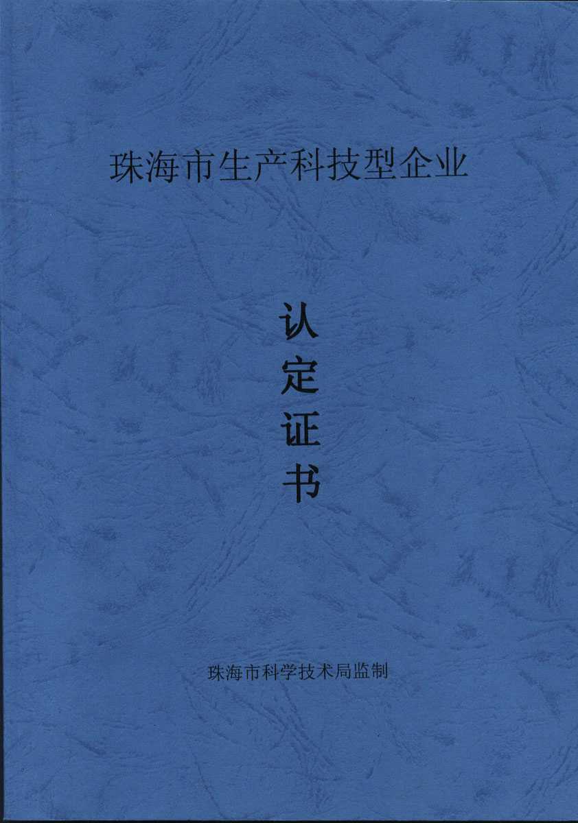 資格證書 一、ISO9001:2008質(zhì)量管理體系認(rèn)證ISO9001:2008質(zhì)量管理體系認(rèn)證證書 二、廣東省民營科技企業(yè)資格證書民營科技企業(yè)資格證書 廣東省民營科技企業(yè) 三、珠海市生產(chǎn)科技企業(yè)證書生產(chǎn)科技型企業(yè) 珠海市生產(chǎn)科技型企業(yè) 認(rèn)定證書 生產(chǎn)科技型企業(yè)資格證書(以上圖片均可點擊放大) 2012-11-27 37516